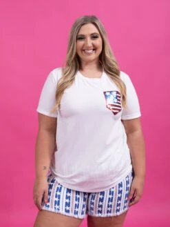 American Flag Sequin Pocket Patch Short Sleeve T-Shirt | S – 2XL