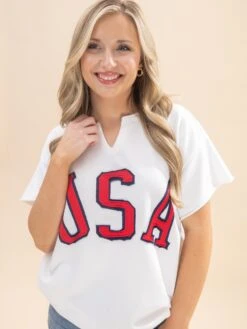 “USA” Letter Printing Sweatshirt With V Neck And Short Sleeves | S-3XL Americana