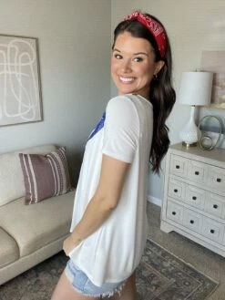 Sequin Stripe Embroidered Oversized Top | S – L Fantastic Fawn
