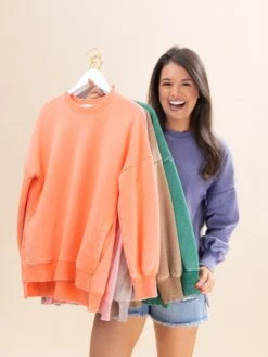 Zenana Acid Wash Fleece High Low Hem Pullover | S – 3X
