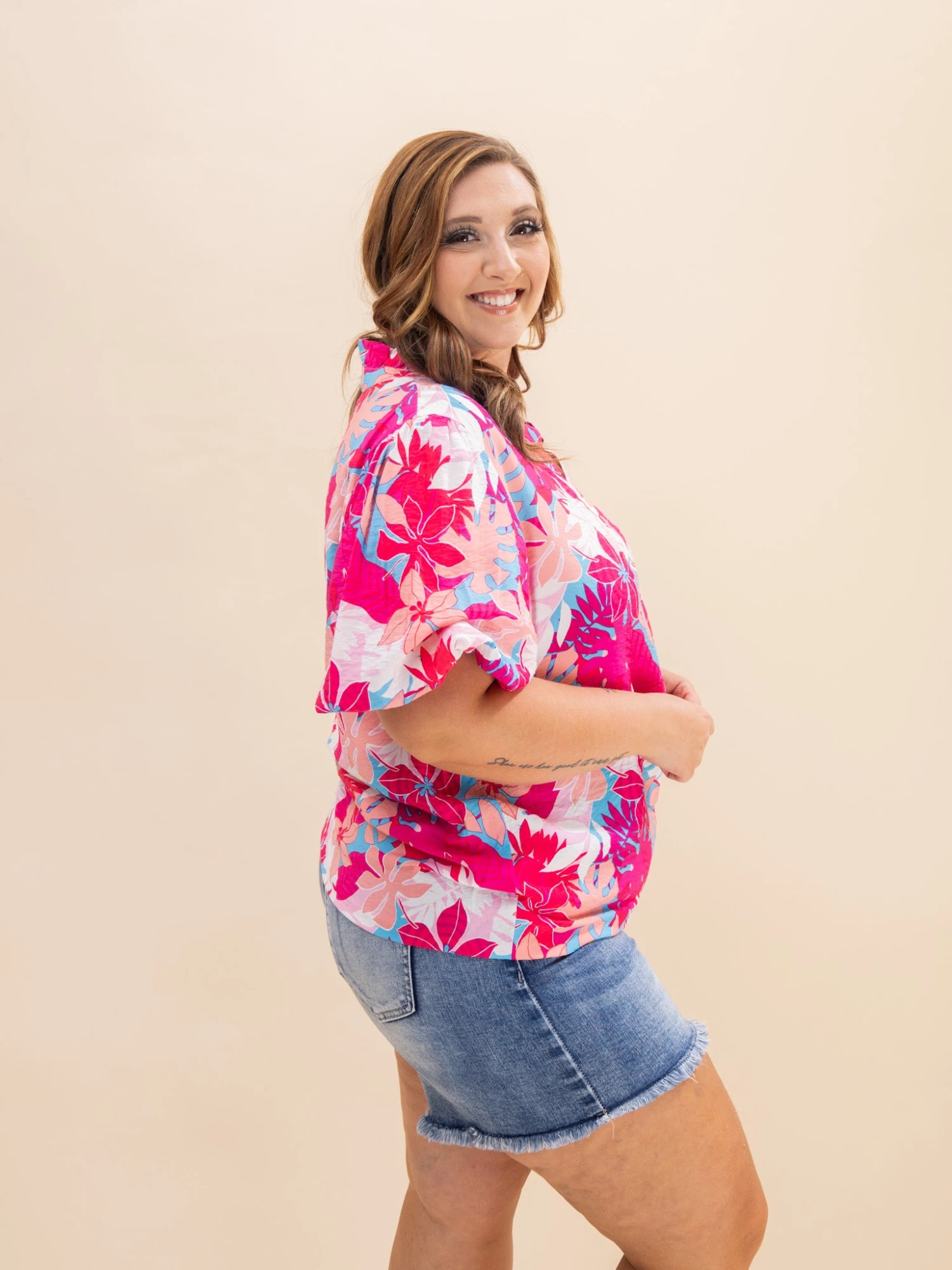 Erin is 5’8, 36C bra, typically wears size L/XL in tops and 14/15 in denim. Wearing size XL