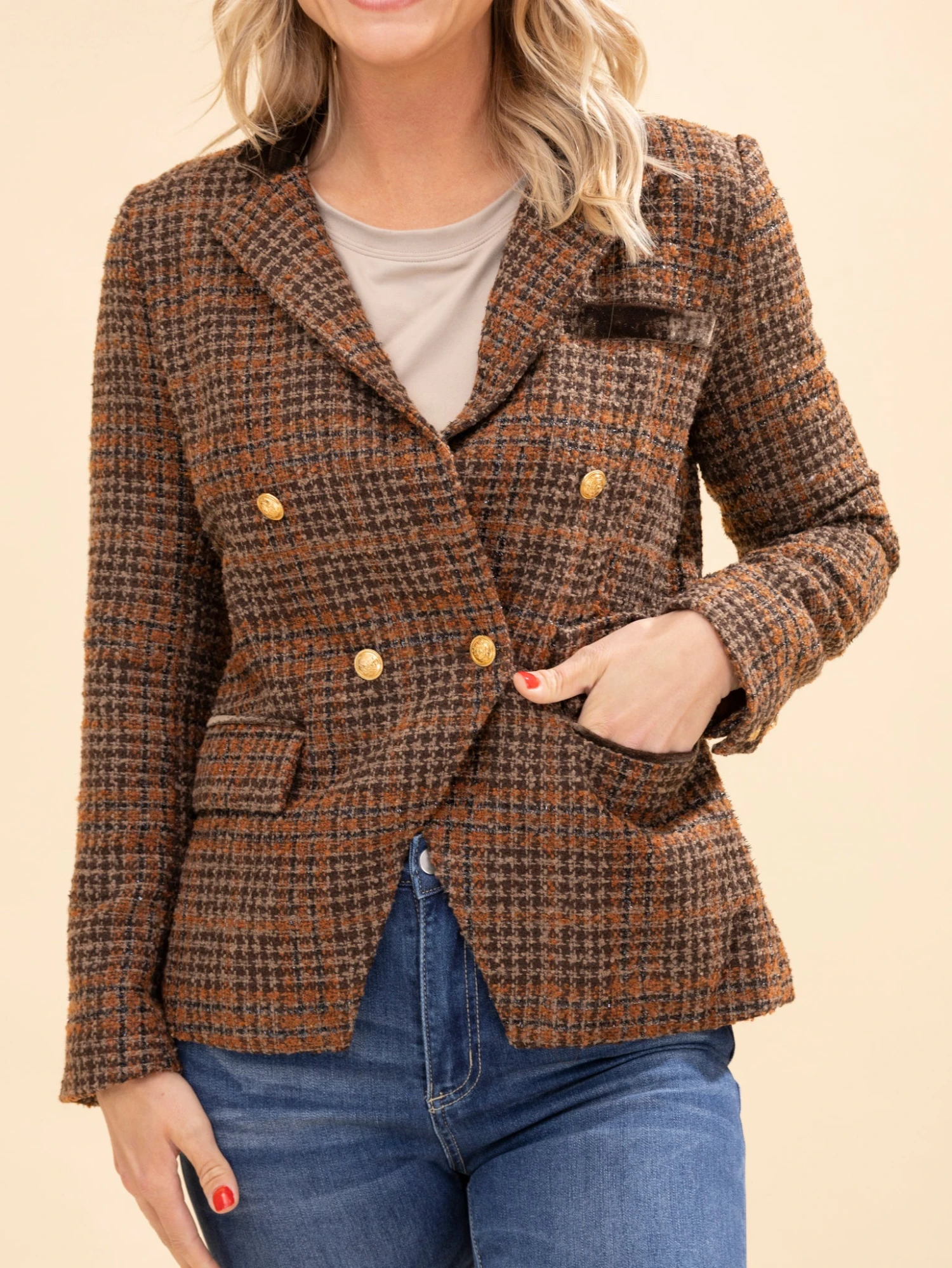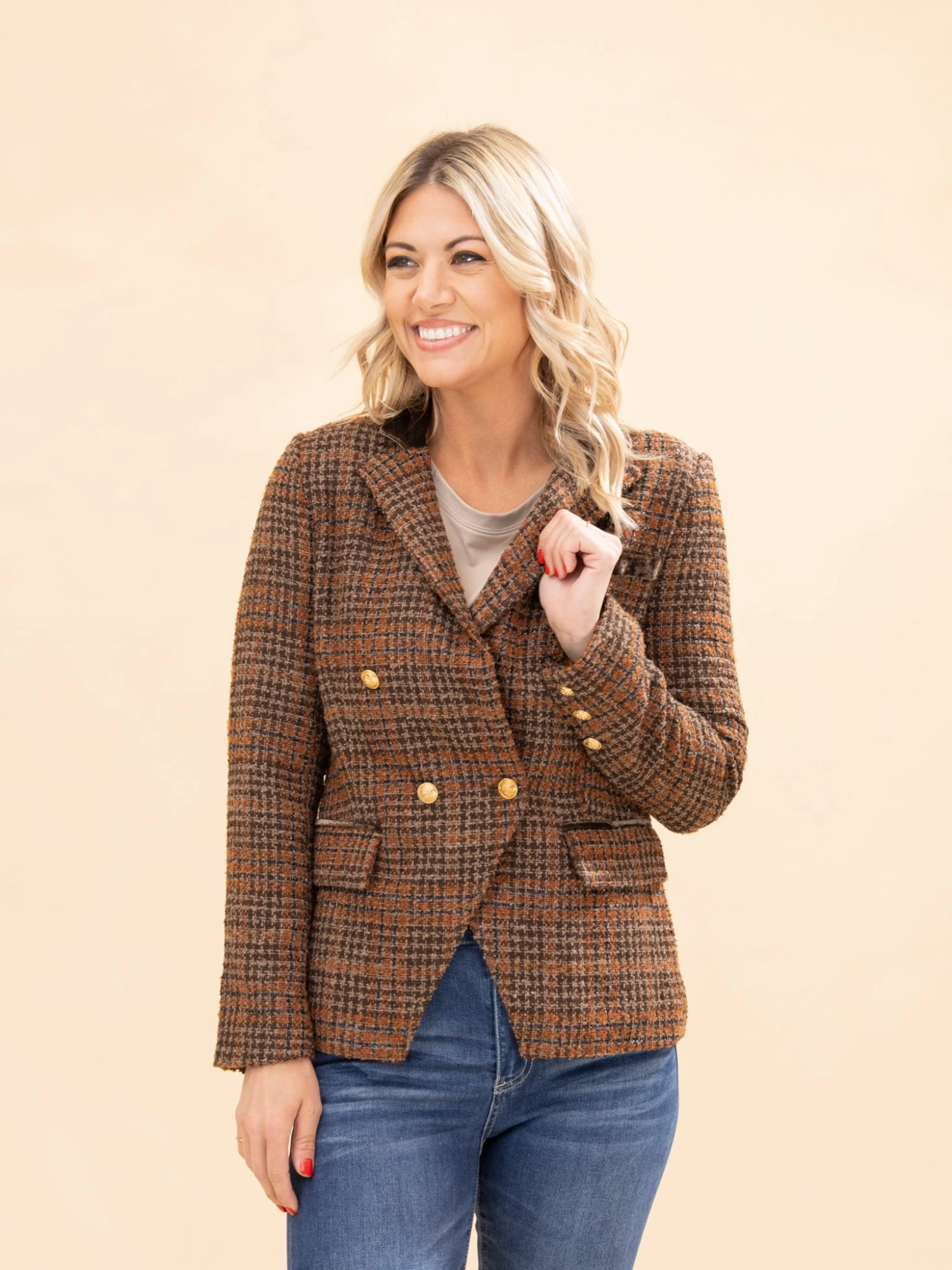 Brittany (short blonde hair) is 5’10, 36B bra, typically wears size S in tops and 3 in denim. Wearing size S