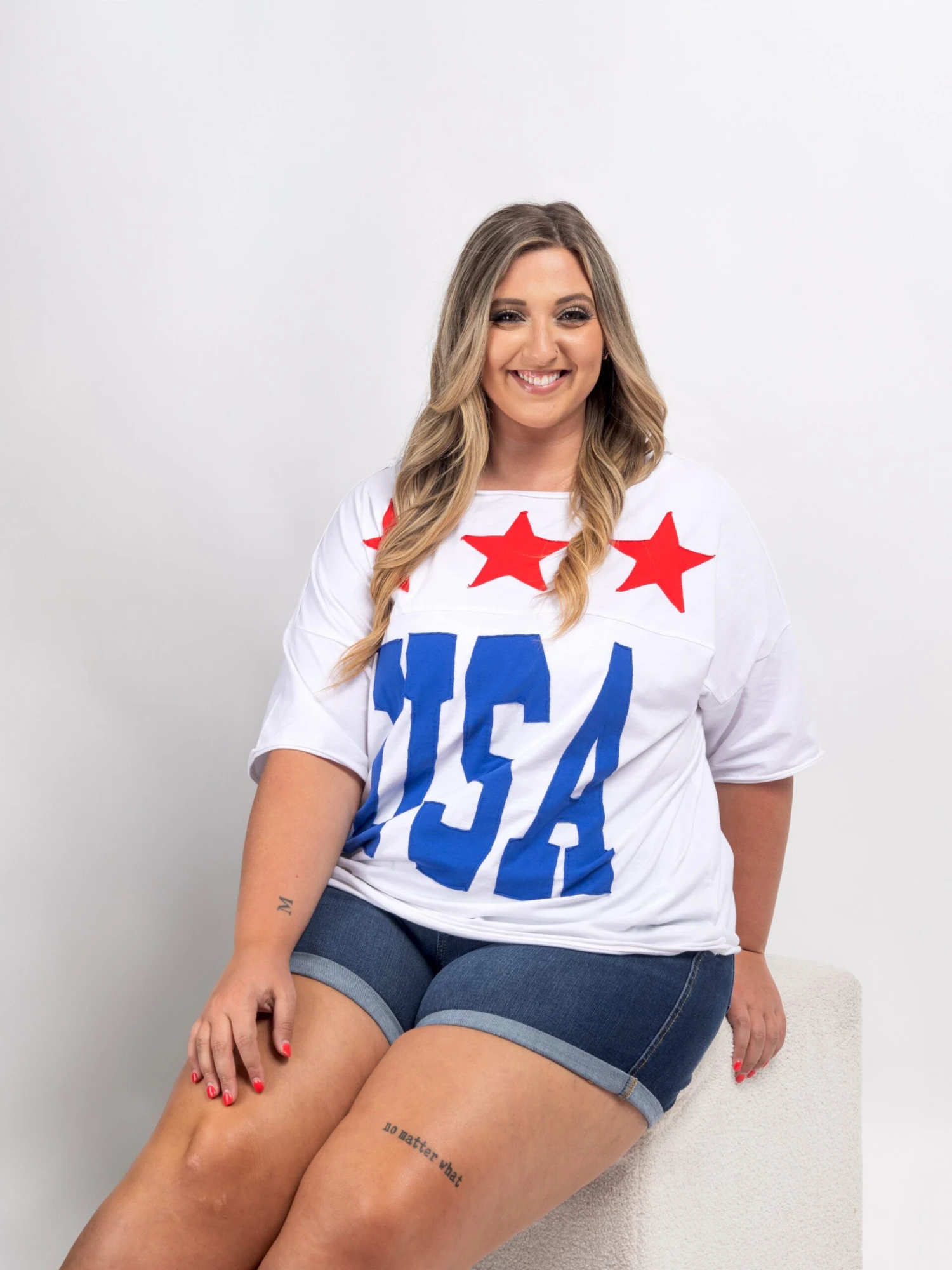 Erin is 5’9, 36C bra, typically wears size L/XL in tops and 14/16 in denim. Wearing size 1X