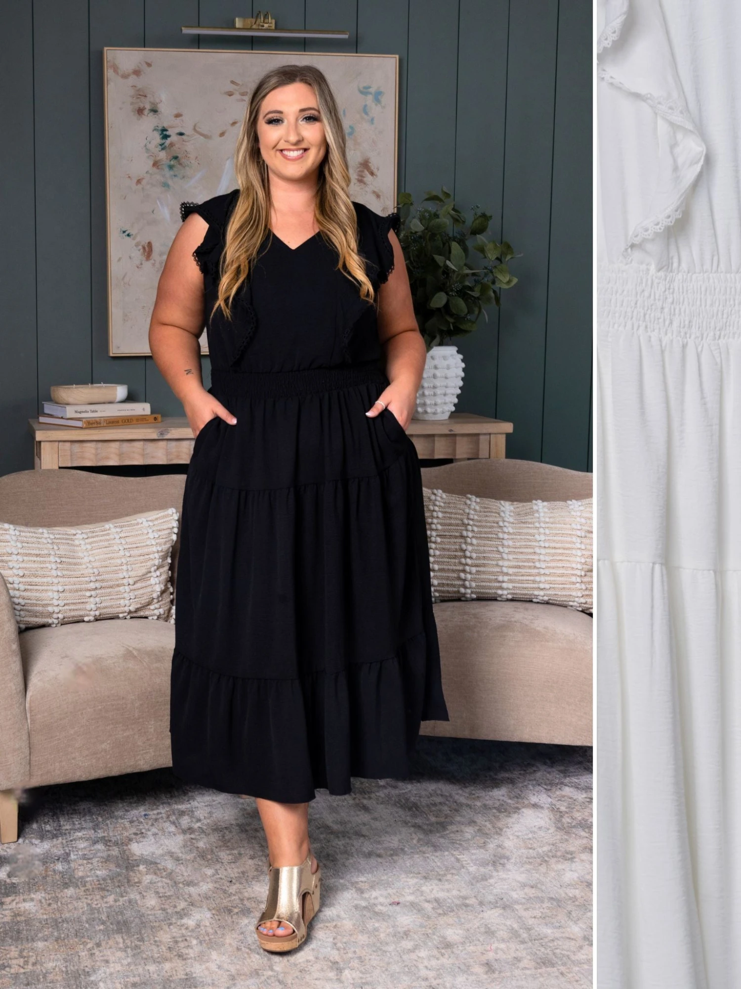 Features: V Neck, Lace Flutter Sleeves, Lined