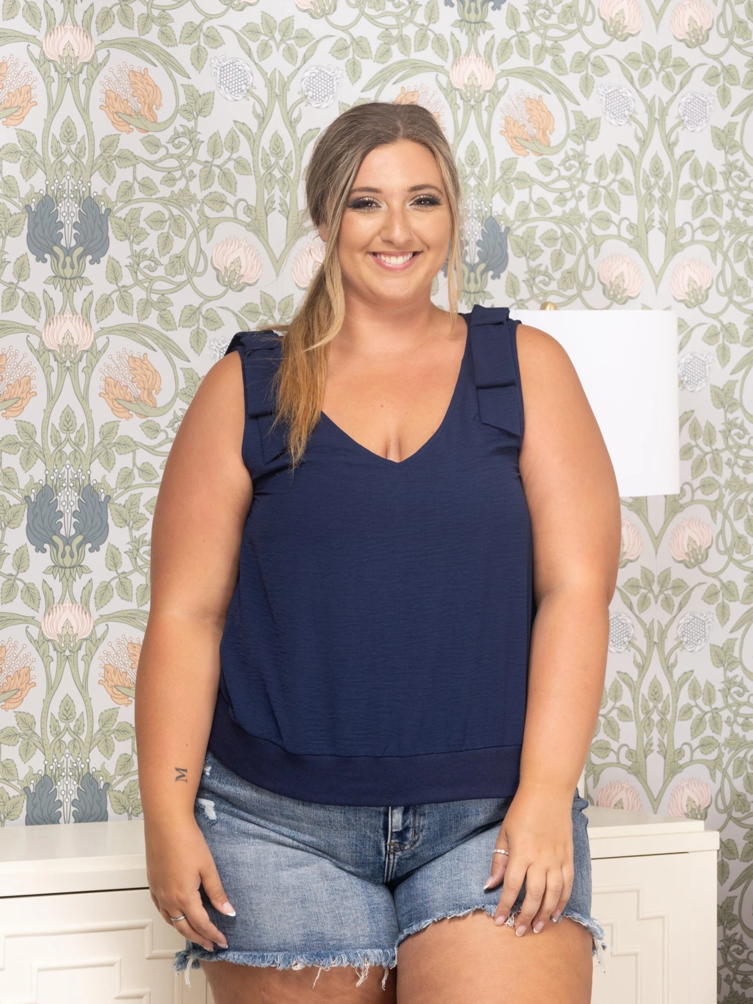 Erin is 5’8, 36C bra, typically wears size L/XL in tops and 14/16 in denim. Wearing size XL