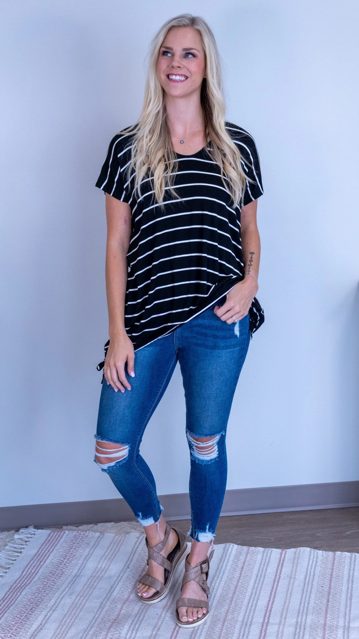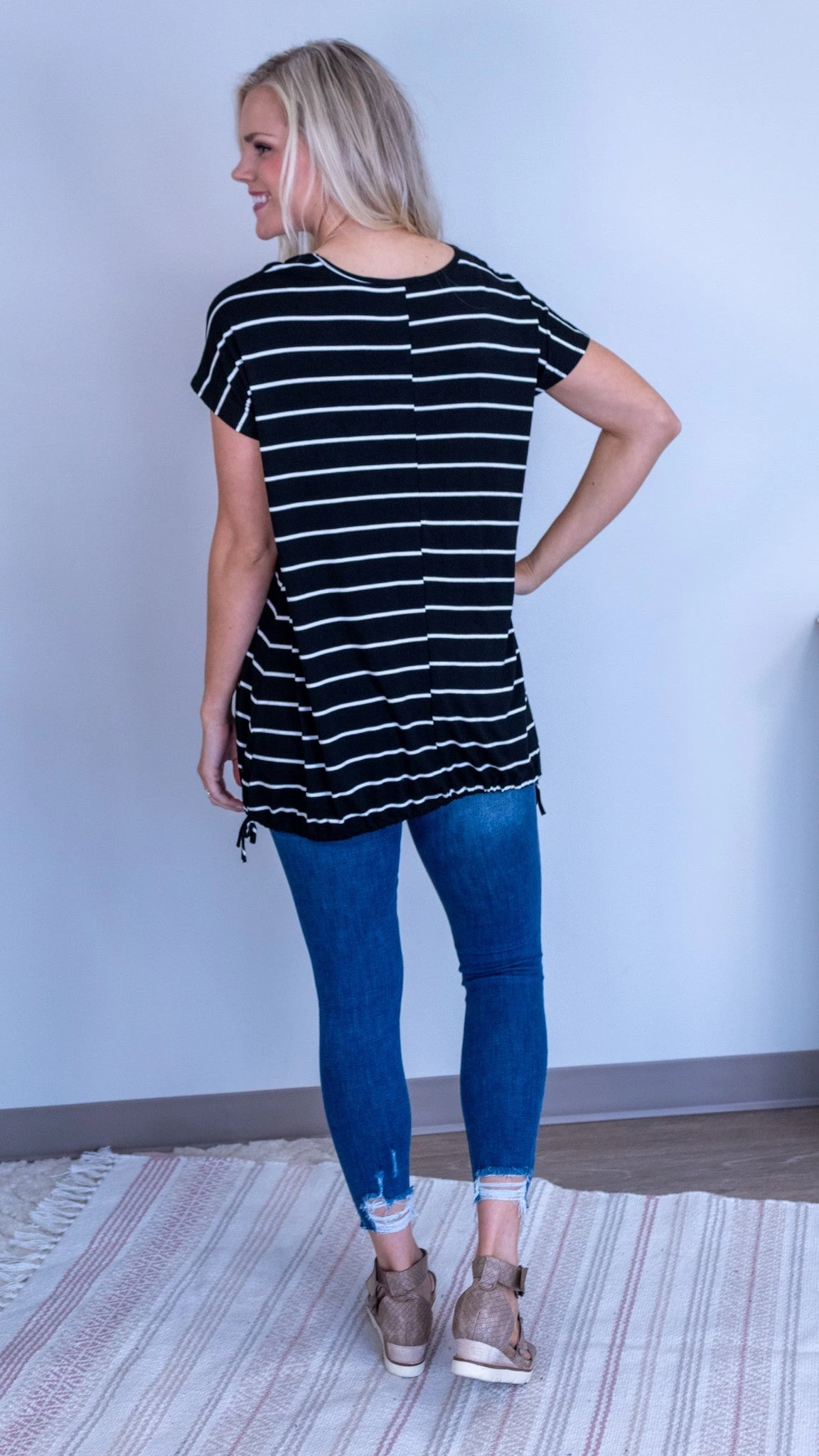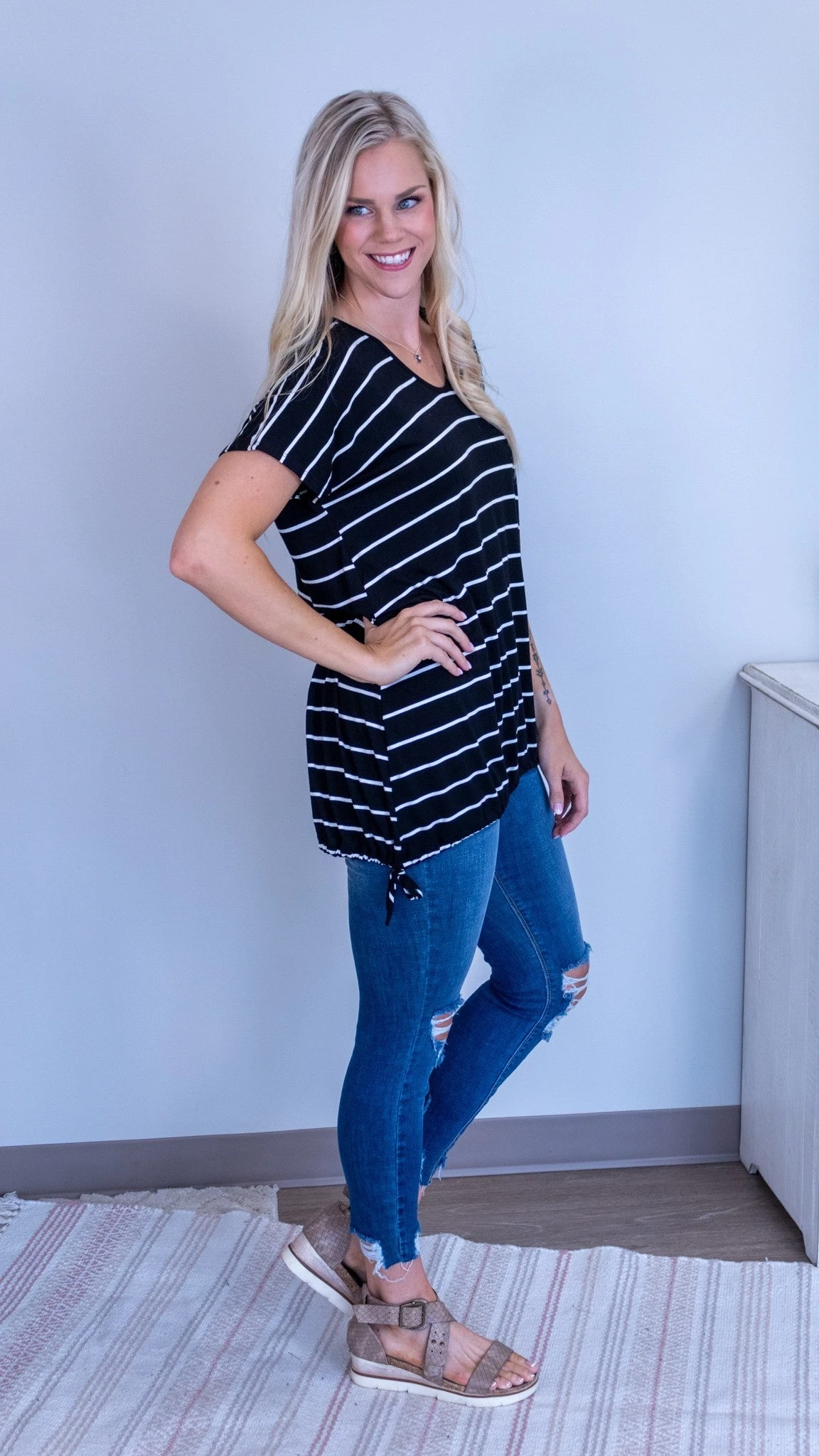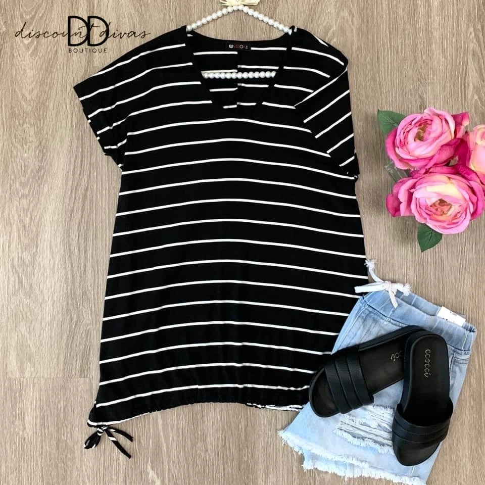 The Making Waves Tunic is perfect for the summer!! The V neckline is so flattering- and it has ties at the bottom!! Wear this over your favorite swimsuit on boat days!