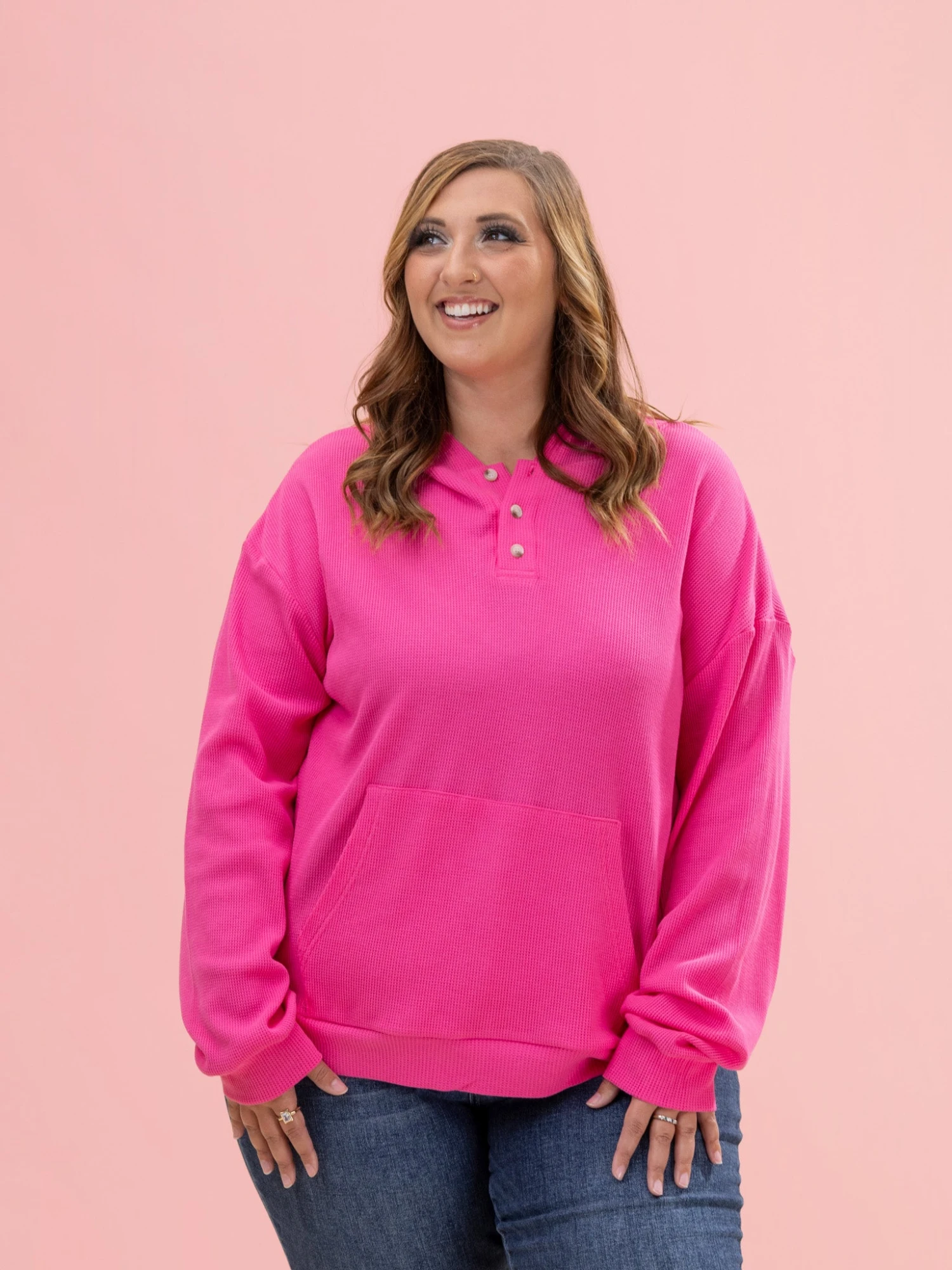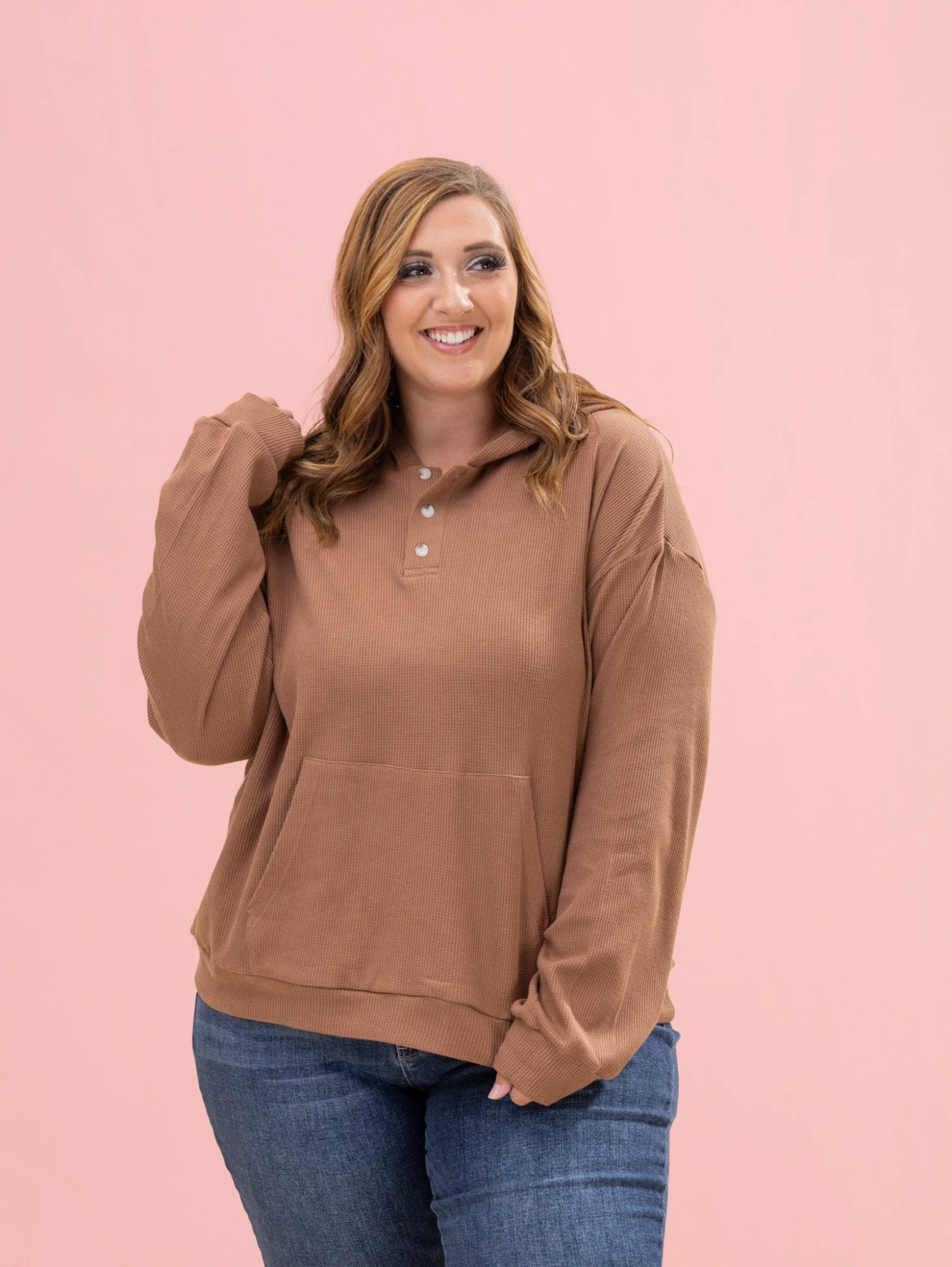 Features: Hoodie W/ Buttons, Long Sleeves, Kangaroo Pocket, Thermal Knitted Hoodie
