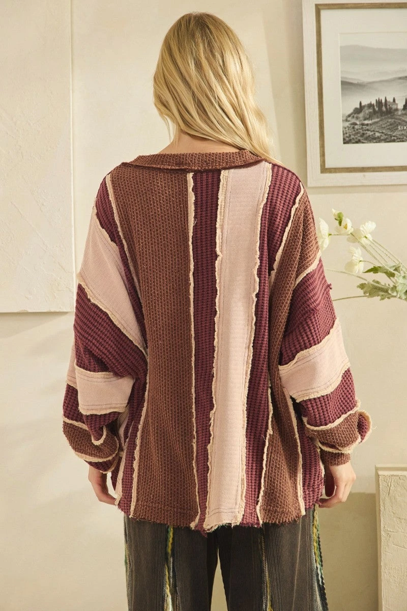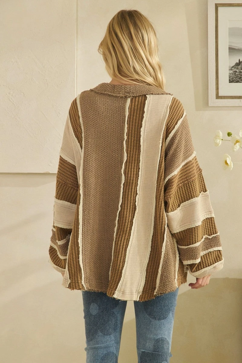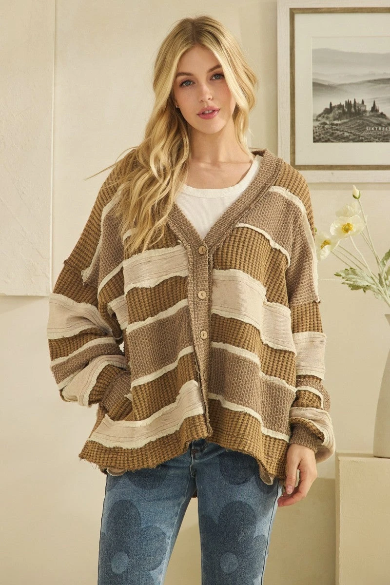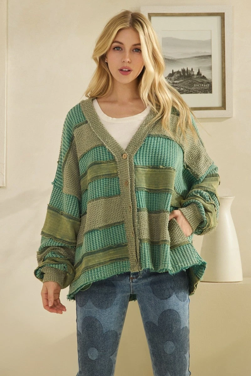 Features: Washed, Colorblock, Patch Work, Cardigan