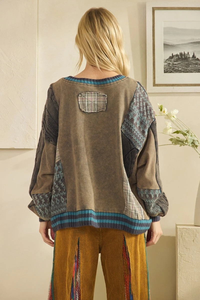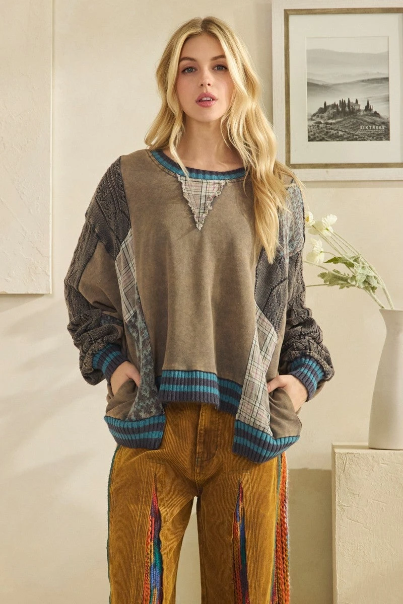 Features: Washed, Mix Fabric, Sweater, Top