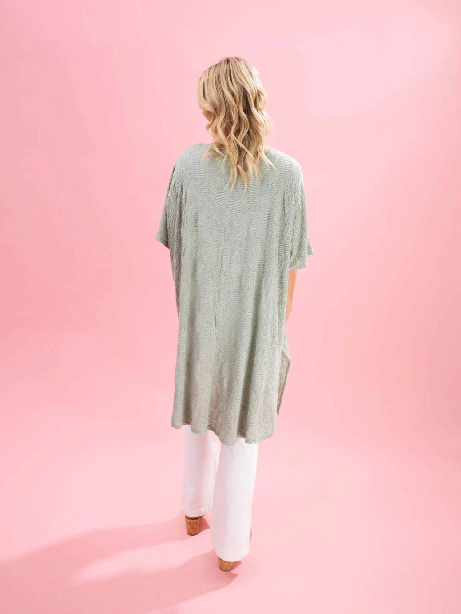 Features: Open Front, No Pockets, Side Slits, Wave Jacquard, Short Sleeve