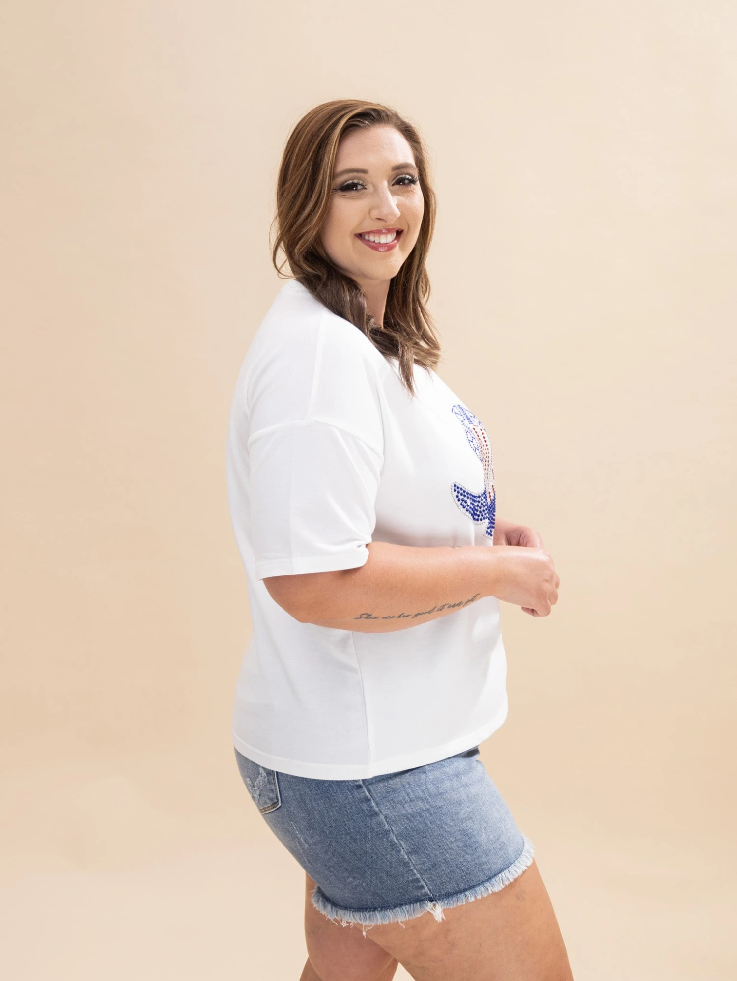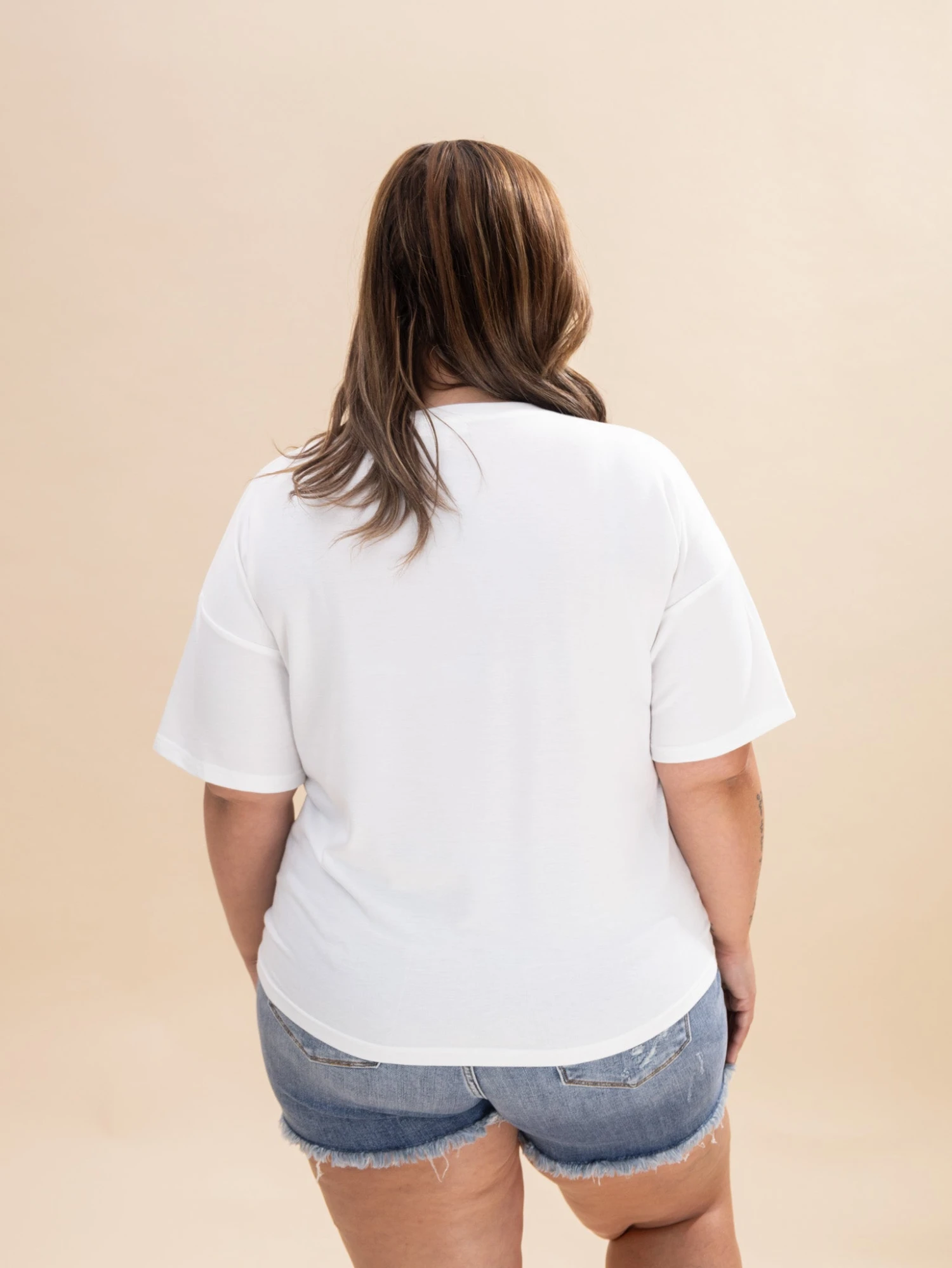Erin is 5’8, 36C bra, typically wears size L/XL in tops and 14/15 in denim. Wearing size XL