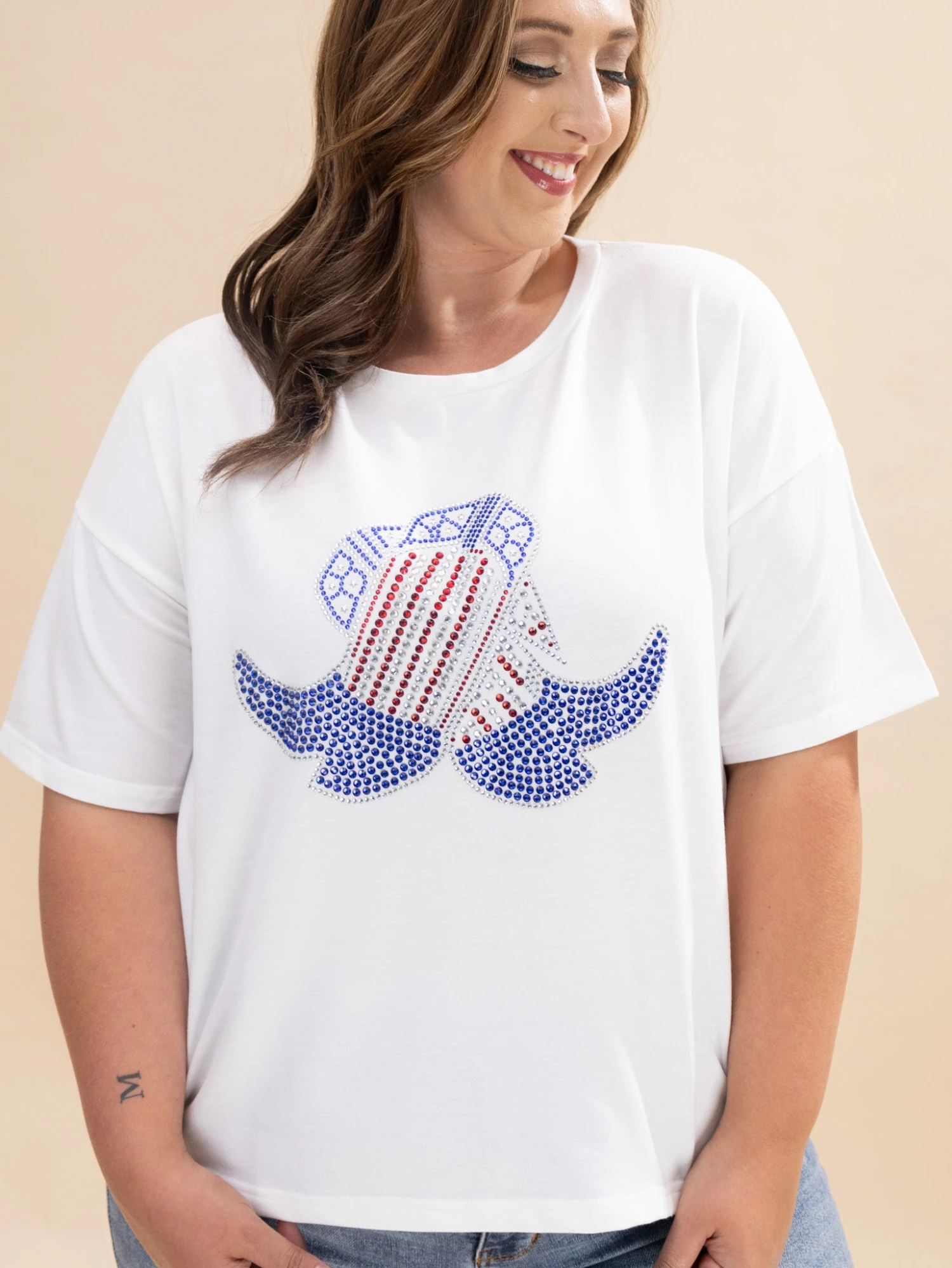Features: Round Neck, Short Sleeves, Jeweled Boots