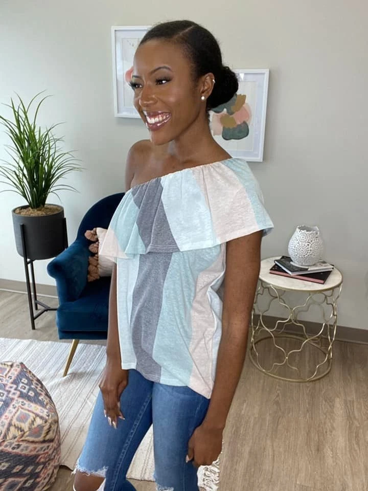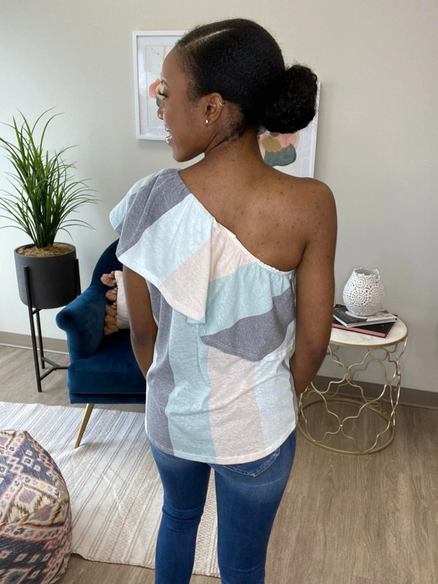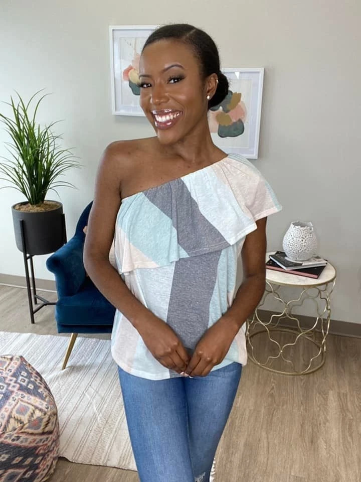 The “What Do You See Top” has arrived! This super cute multicolor top is gorgeous! We are loving the one shoulder look! Be sure to snag one before they are gone!