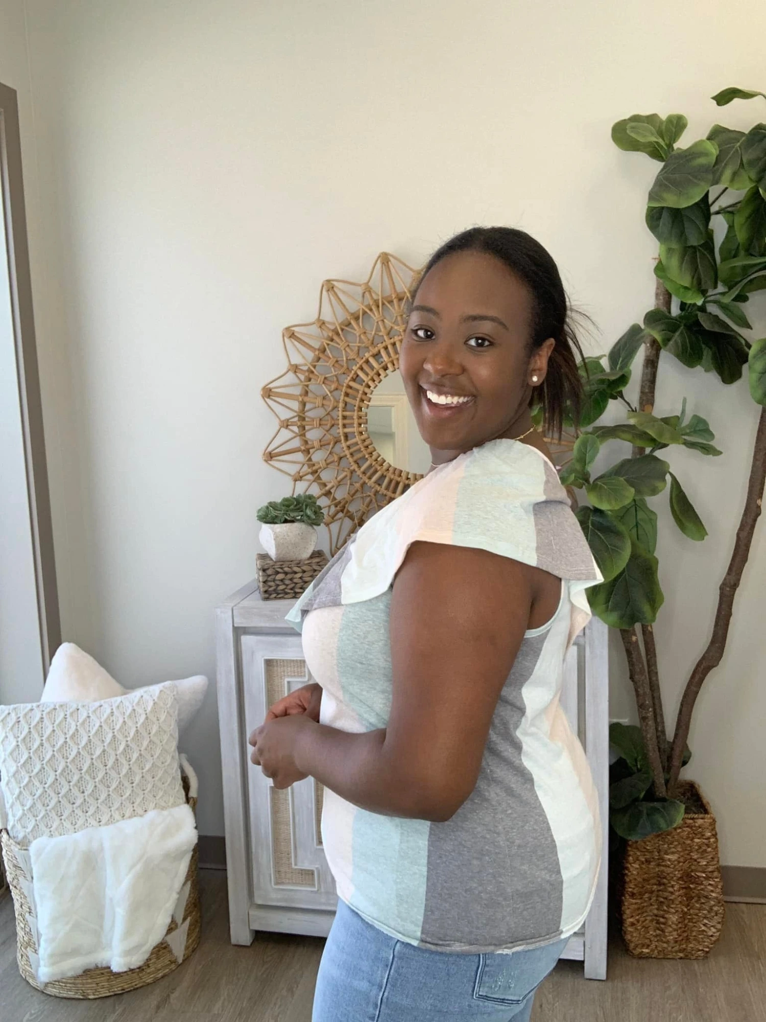 Emry: 5’5’ XL/L in tops and dresses, Size 14 In bottoms