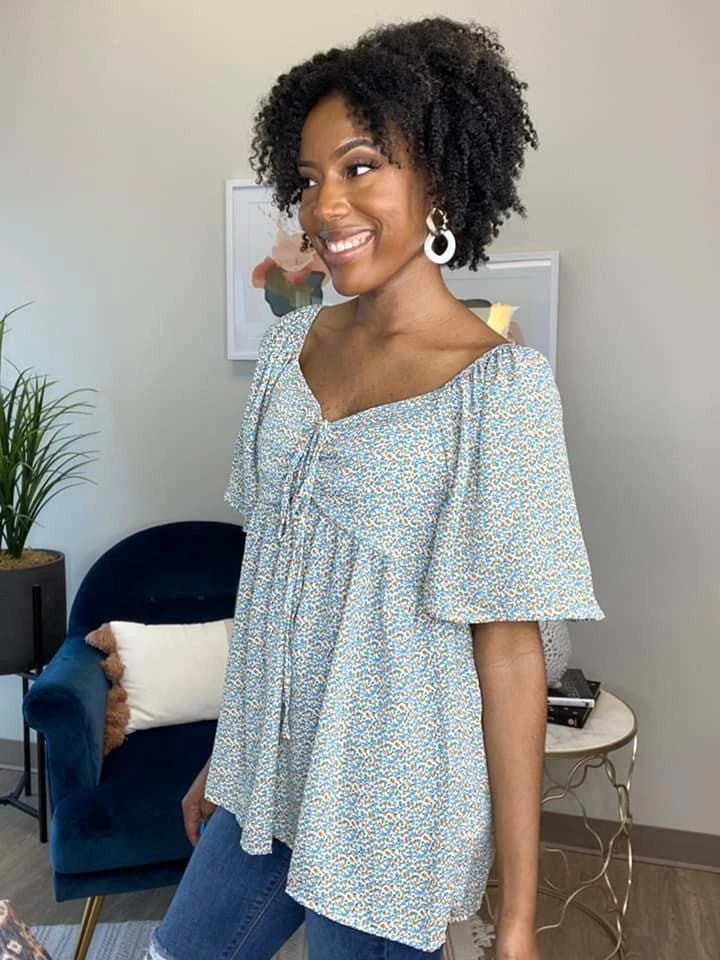 The “What You Need Top” has arrived! This adorable top with the ditsy print is to die for! You can’t go wrong with the puff sleeves and front tie! Be sure to snag one before they are gone!