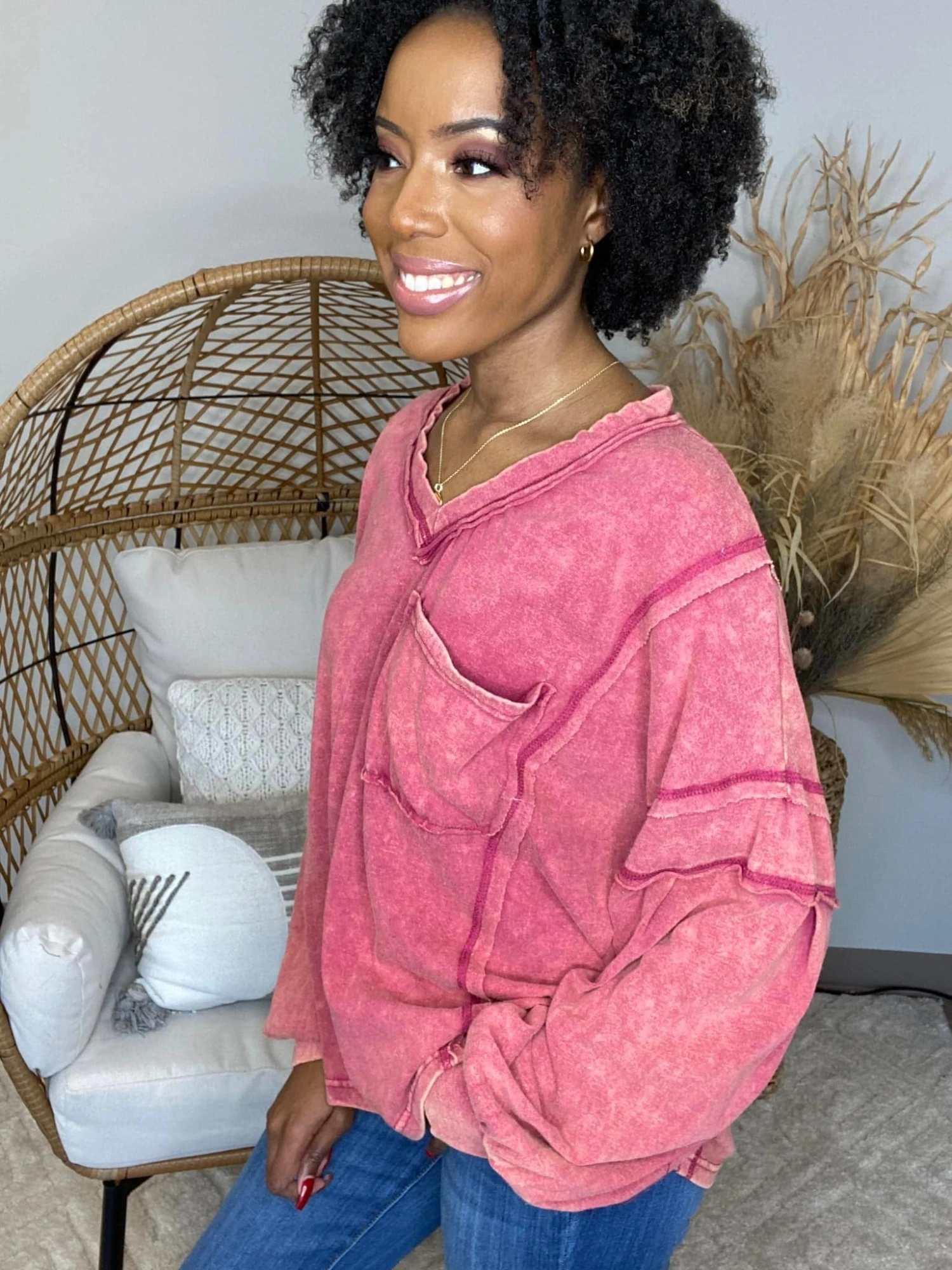 The “With Me Top” has arrived! This super cute oversized top is to die for! The trendy material and the front pocket is perfect! Be sure to snag one while you can!