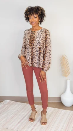 Elbow Balloon Sleeves Pintuck Detail Leopard Printed Blouse *Final Sale*