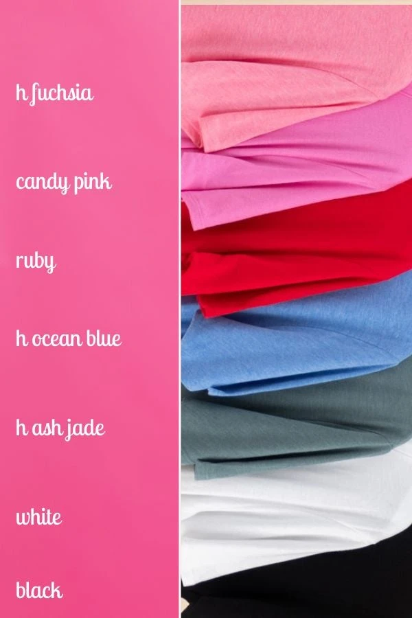 Materials: 100% Cotton (Black, Bright Blue, Candy Pink, Green Mint, Light Navy, Ruby, White)