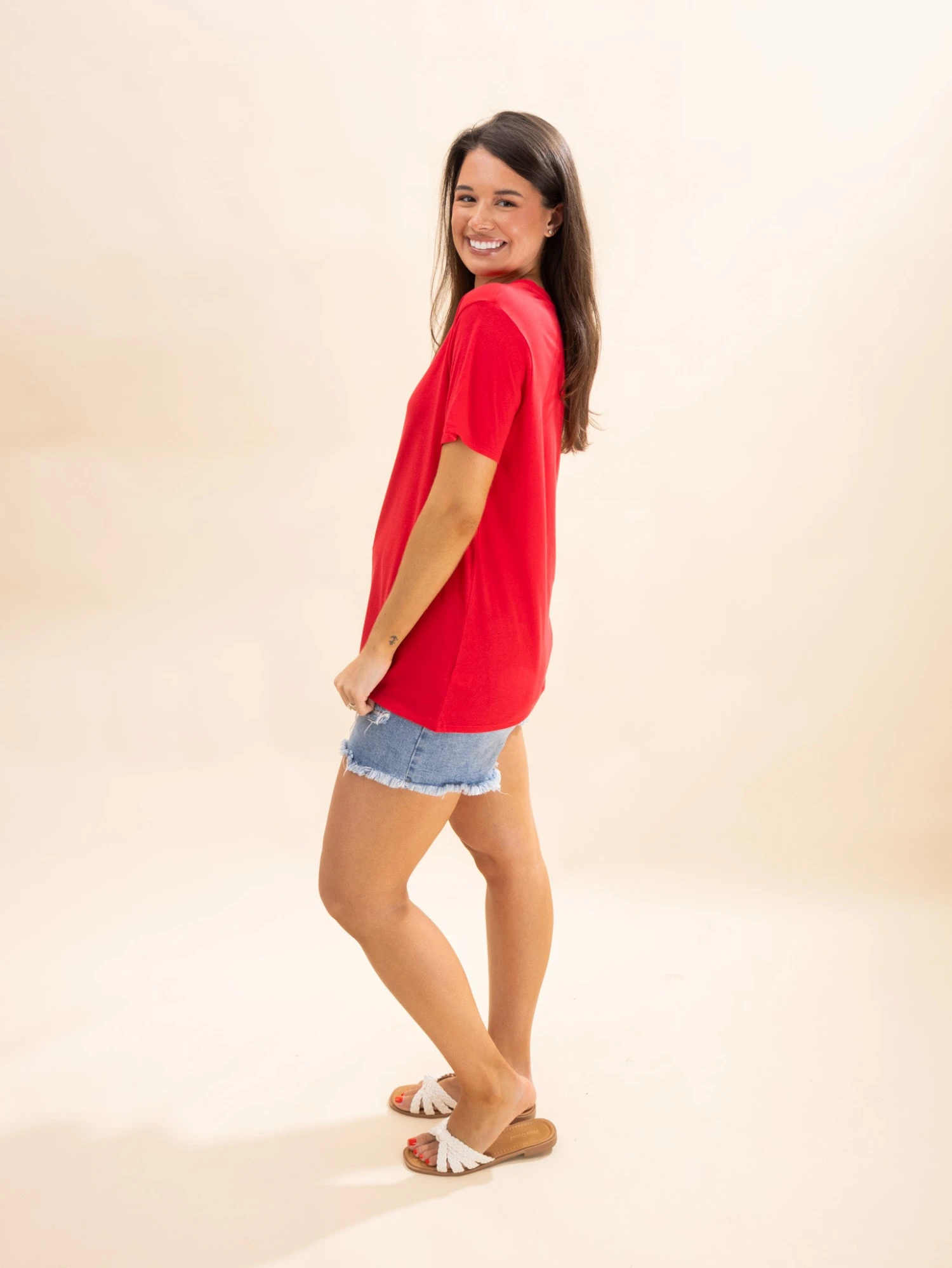 Erin is 5’8, 36C bra, typically wears size L/XL in tops and 14/15 in denim. Wearing size XL