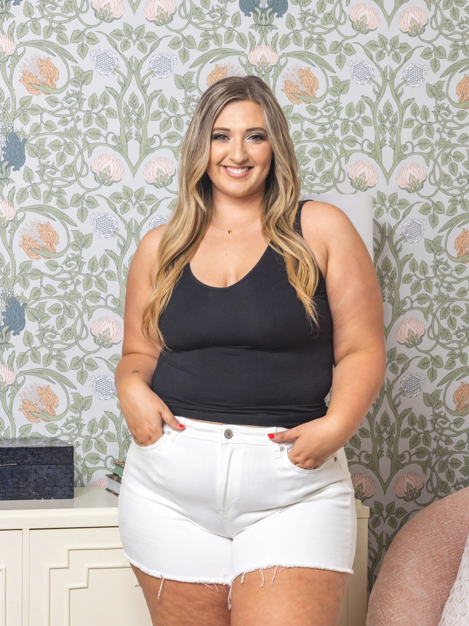 Features: White Denim Wash, Raw Hem