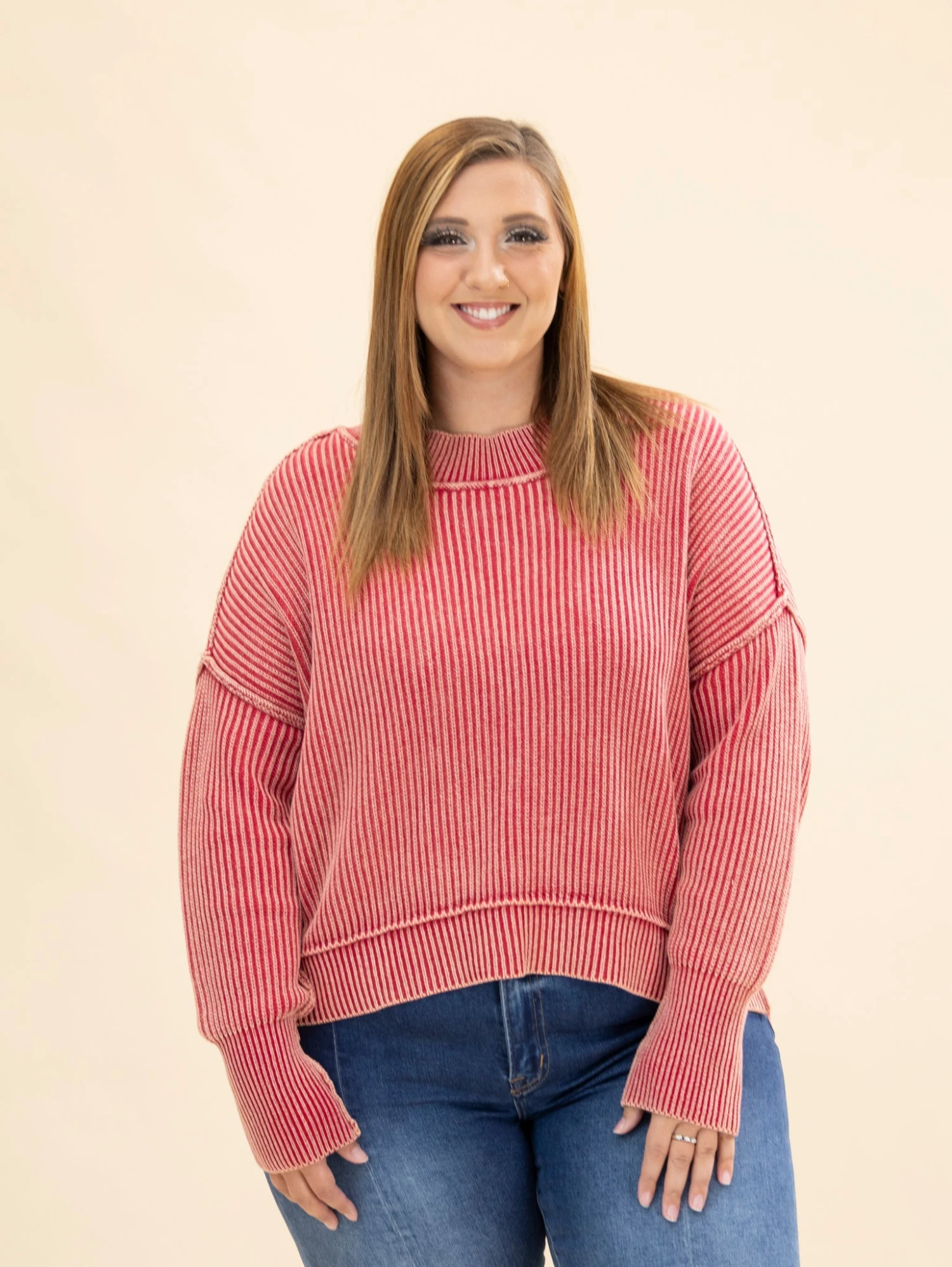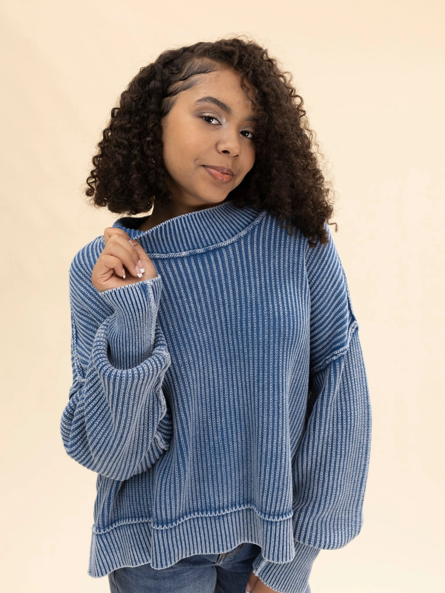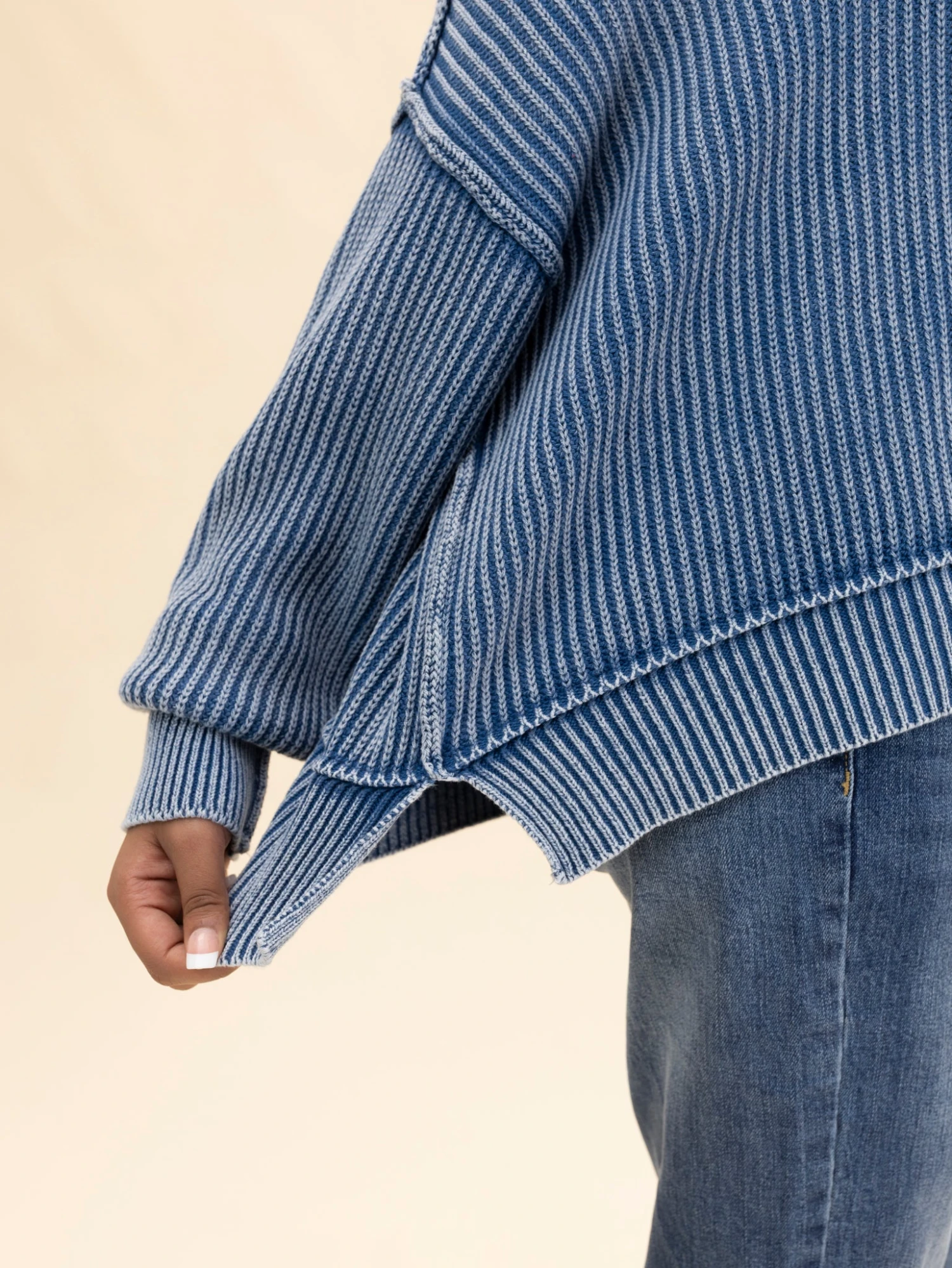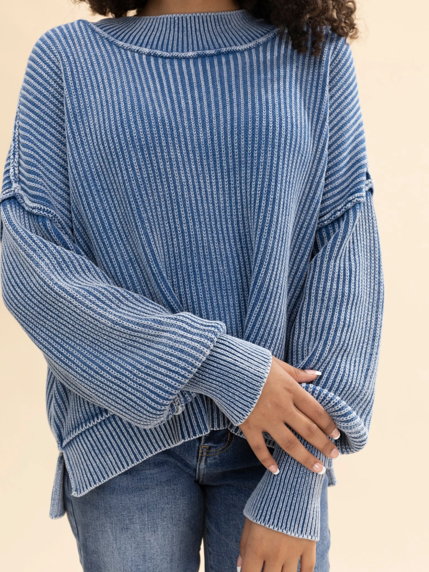 Features: Long Sleeves, Round Neck, Oversized, Cropped, Side Slits